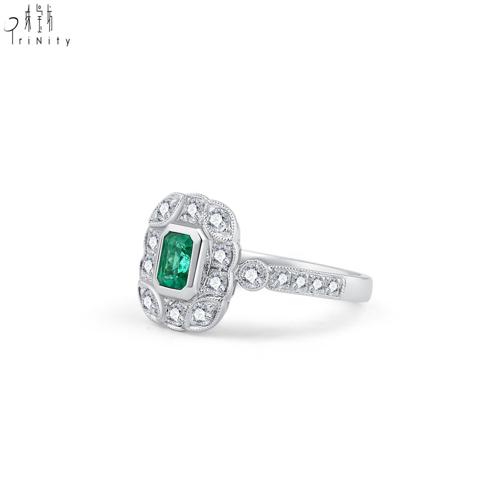 Nom du produit:Bague en or massif blanc 18 carats avec halo, émeraude naturelle véritable et diamants