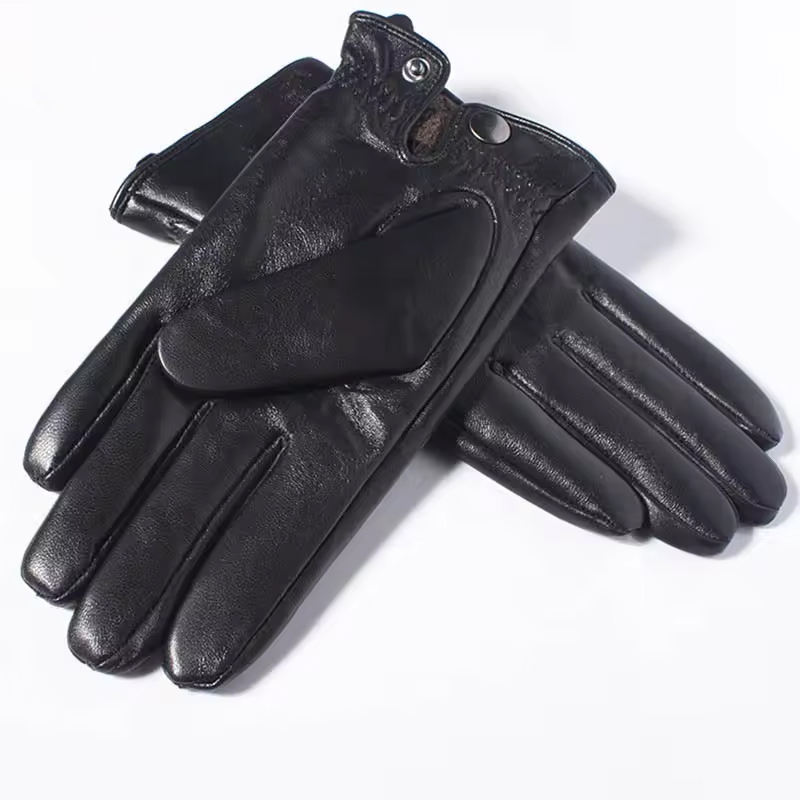 Gants d'hiver en cuir véritable de qualité supérieure écran tactile noir doublure en laine de mouton véritable gants de course de conduite chauds
