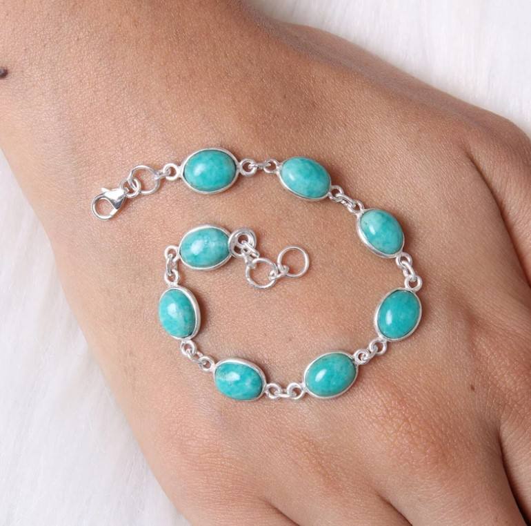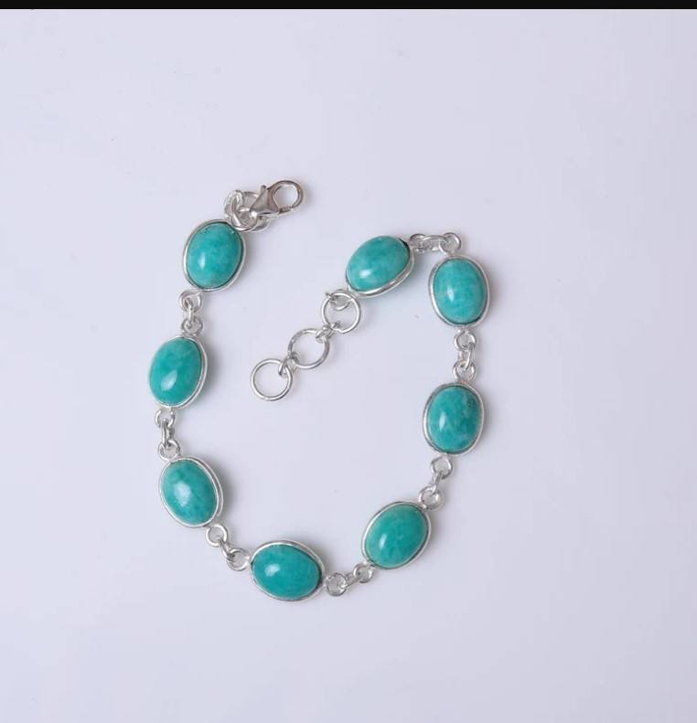 Product Name:Natural Green Amazonite Gemstone silver bracelet