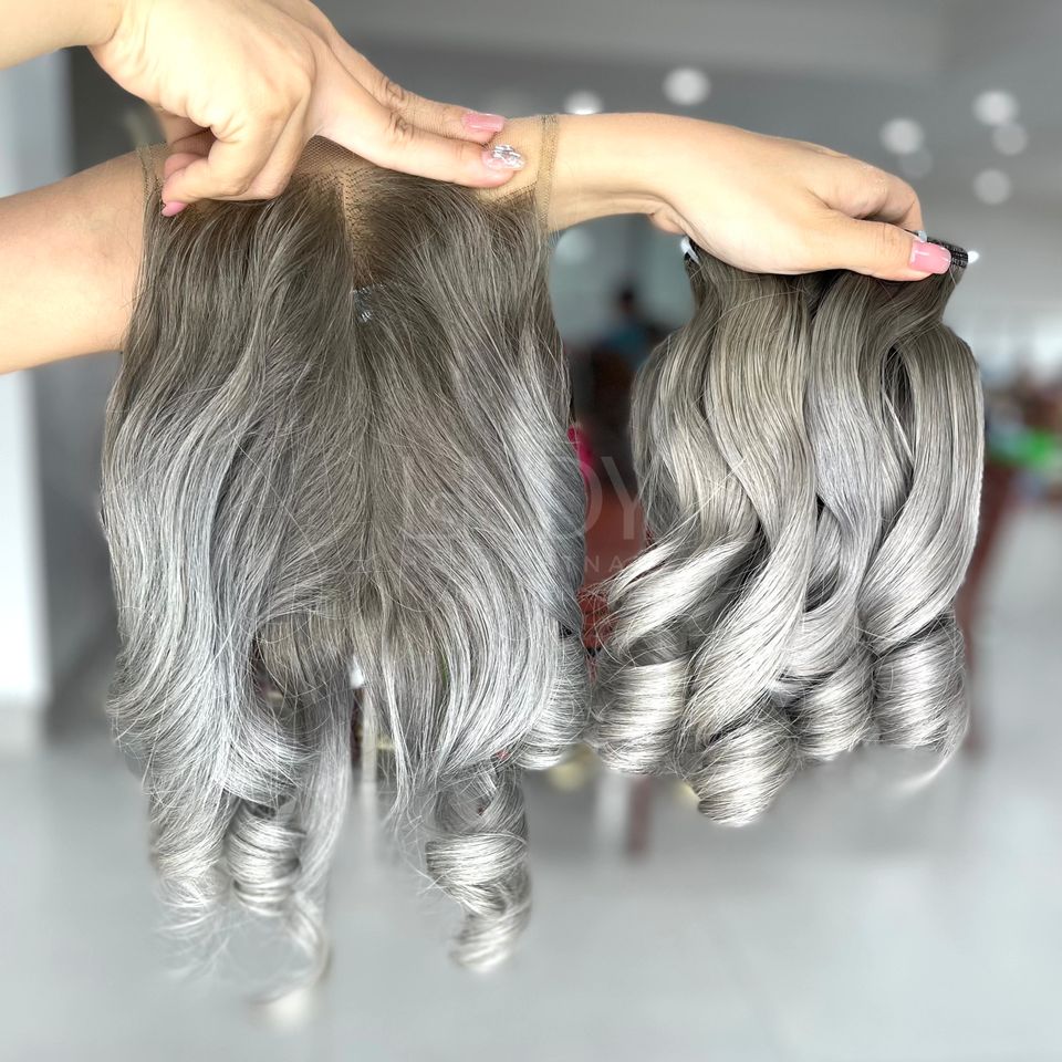 Top Quality Grey Color Vietnamese Hair Extensions Bundles With Closure or Frontal to Make Wigs