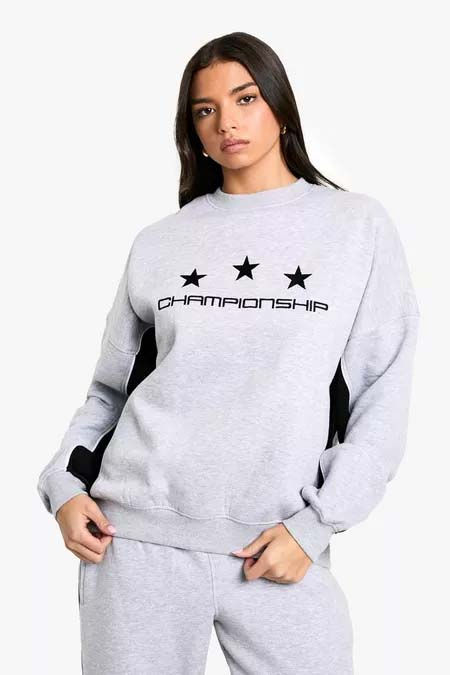 Top qualité gris chiné 2 pièces femmes étoile Slogan survêtement ensemble respirant à capuche et pantalons de survêtement survêtement ensemble femmes survêtement