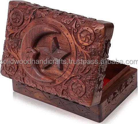 Top Quality Handmade Carved Wooden Boxes Jewelry Box Organizer Wood Gift Ideas for Storing Jewelry Coins