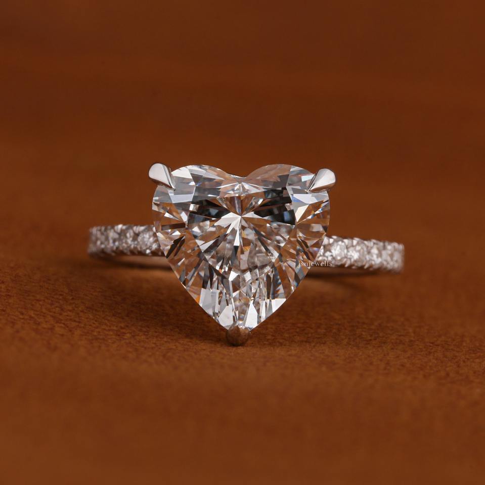 Bague de fiançailles solitaire en or blanc 14 carats avec diamant de laboratoire en forme de cœur de qualité supérieure pour femmes, bijoux de luxe sur mesure
