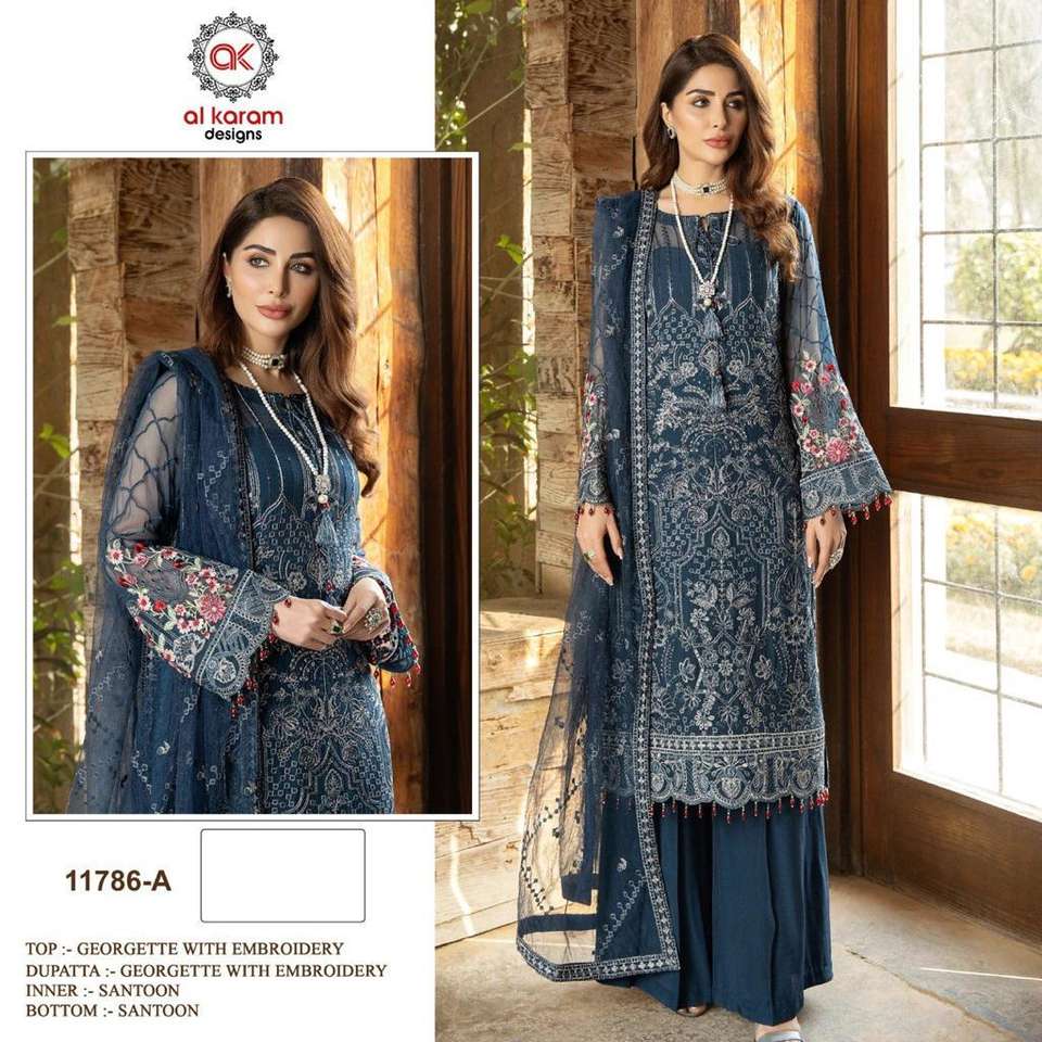 Georgette lourde de qualité supérieure avec motif de broderie lourd Costume Alkaram pour mariage et fête de l'Inde