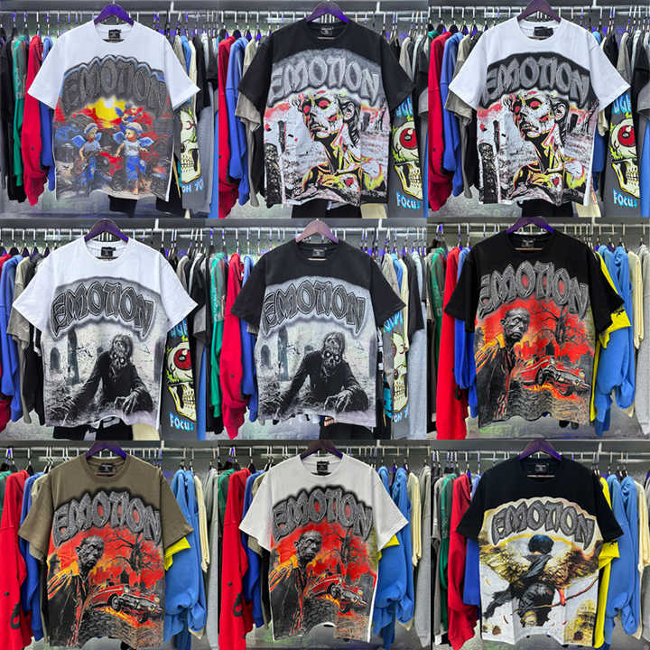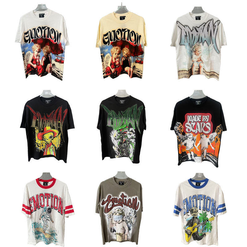 T-shirt à manches courtes pour homme en coton 100% de qualité supérieure, imprimé rétro MIXED EMOTIONS, style streetwear décontracté, hip-hop