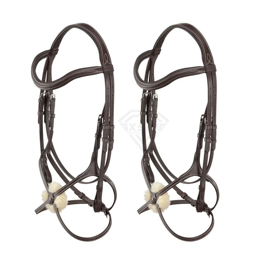 Équipement d'équitation de qualité supérieure Bride avec fourrure Bride de cheval en cuir de haute qualité Bride de cheval en cuir réglable