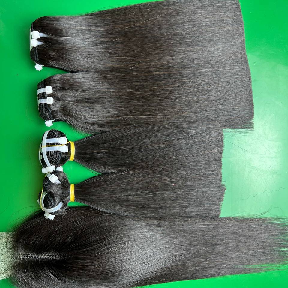 Top Quality Hot Deal Vietnamese Qhair No Shedding Raw Hair Black Bone Straight Genius Weft Machine Bundles From Qhair