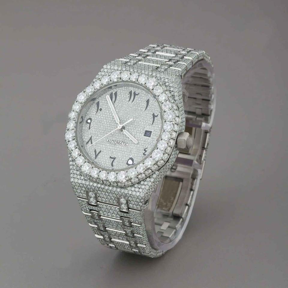 Montre en diamant moissanite glacée de qualité supérieure avec chiffres arabes, style hip-hop, pour un usage décontracté et formel, pour la vente en gros