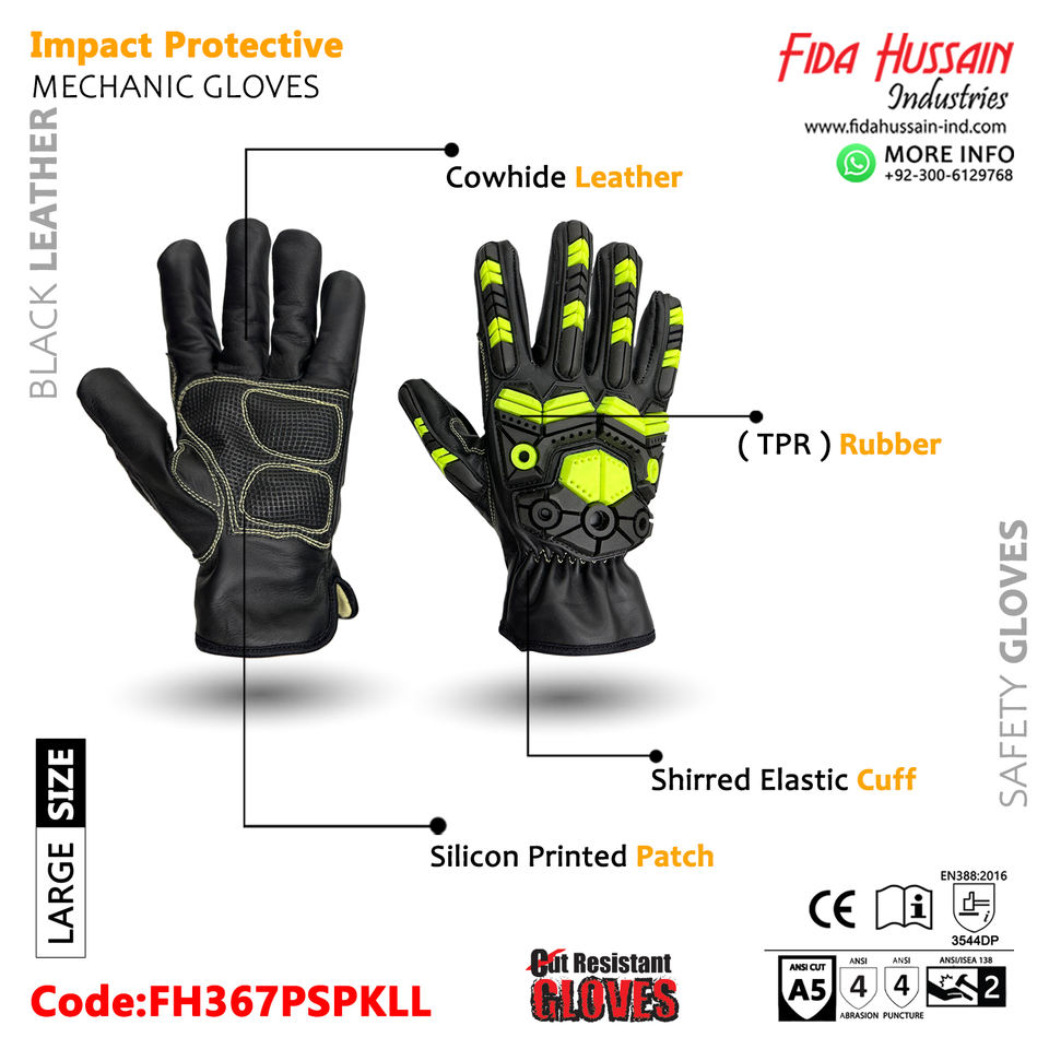 Gants de mécanicien de protection contre les chocs en cuir de vachette de qualité supérieure Keystone Thumb Design TPR Gants de sécurité anti-impact