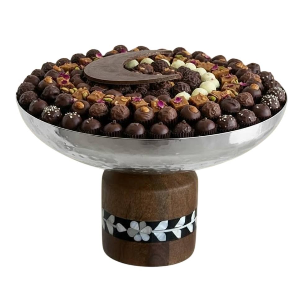 Bol à chocolat en métal argenté de grande qualité avec support, plat de service moderne en acier inoxydable fait main pour la maison et l'hôtellerie