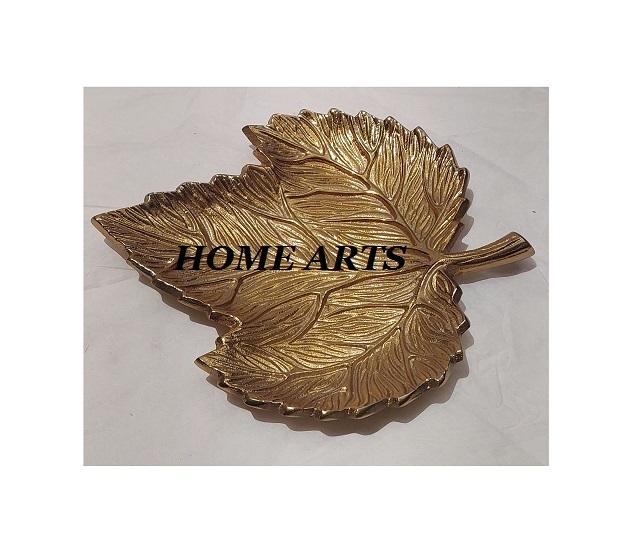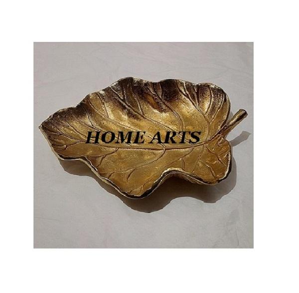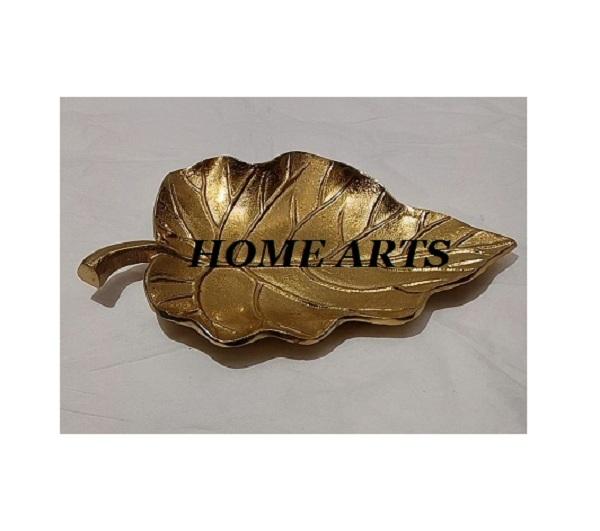 Plat de service alimentaire tendance en forme de feuille, fait main en aluminium couleur or, pour les meilleures ventes