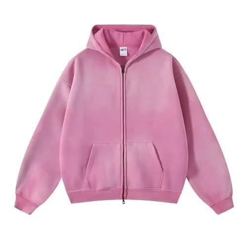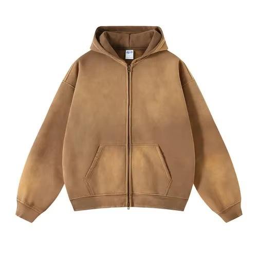 Top qualité homme lavage à l'acide fermeture éclair à capuche décontracté homme vêtements motif personnalisé coupe ample haute rue hommes fermeture éclair sweats à capuche