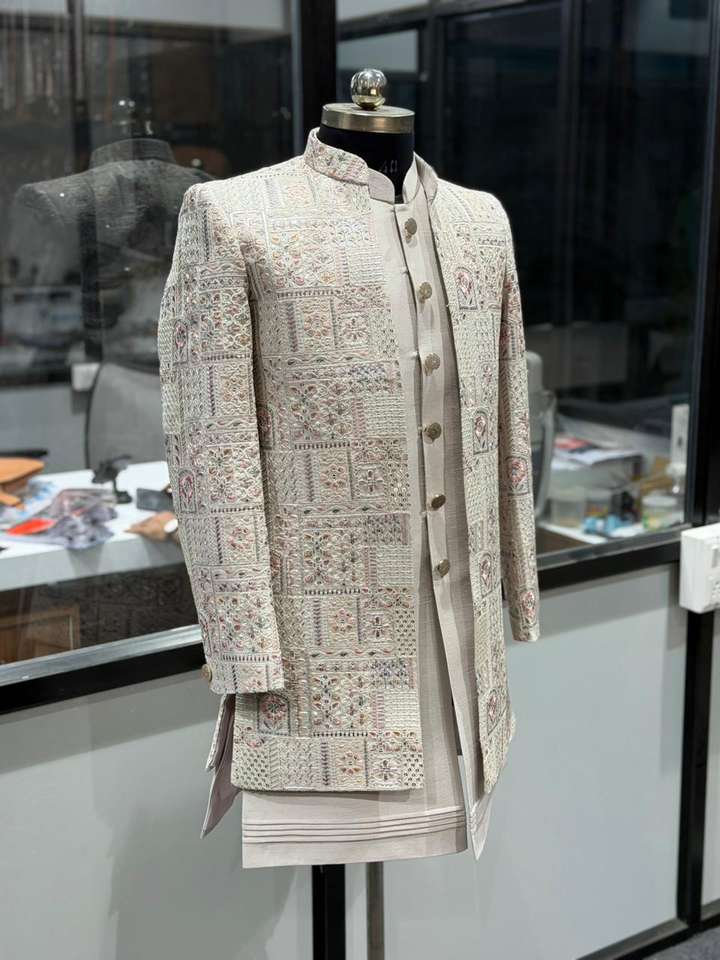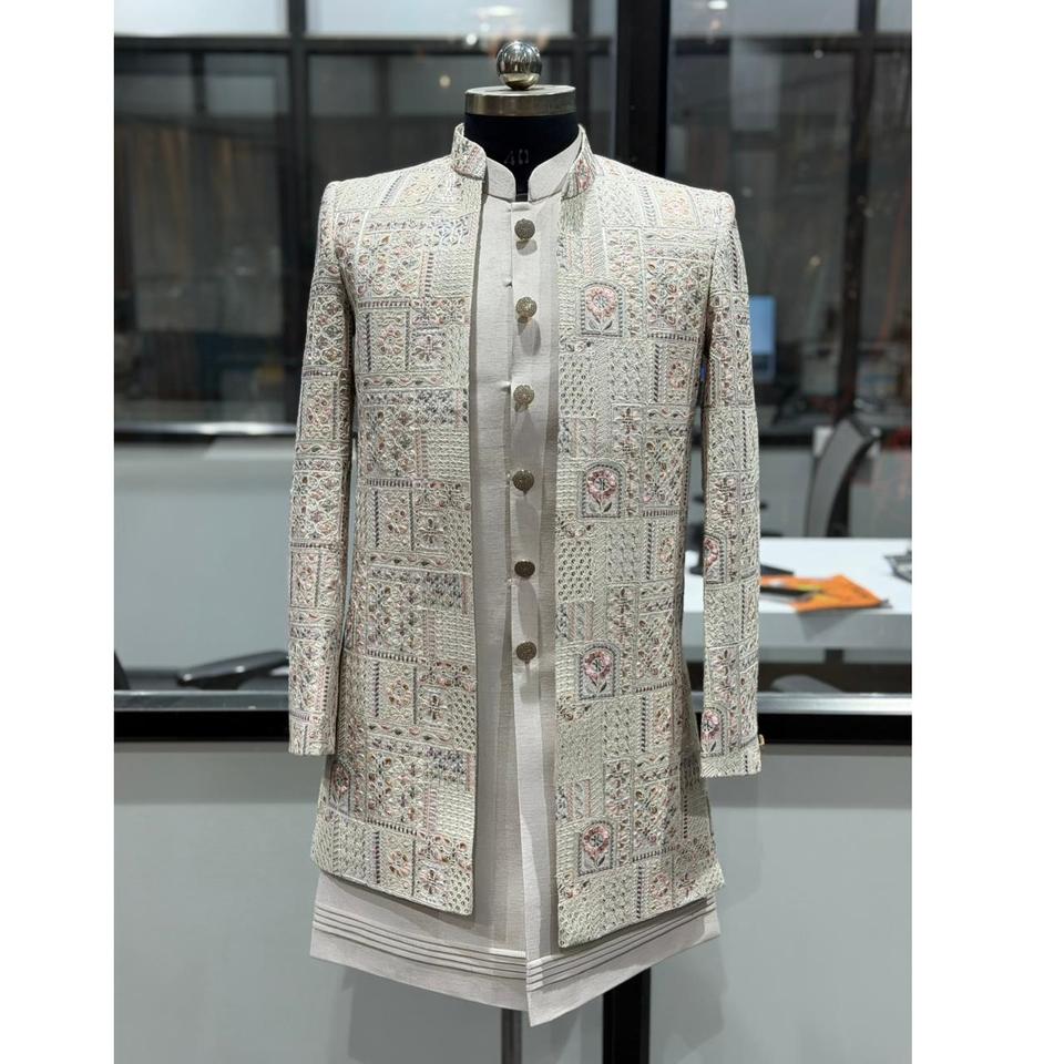 Sherwani long pour homme de qualité supérieure, costume indo-occidental 3 pièces, idéal pour les occasions de fête, disponible au prix d'usine.