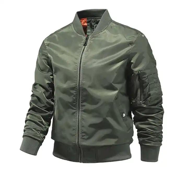 Blouson aviateur en satin de polyester à logo personnalisable pour hommes de qualité supérieure avec col montant Vêtements décontractés pour le service OEM