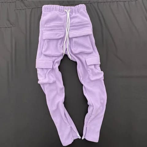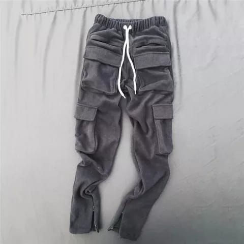 Haute qualité personnalisé hommes Cargo poche Gym entraînement polaire survêtement épais ceinture moelleux chaud pantalon OEM