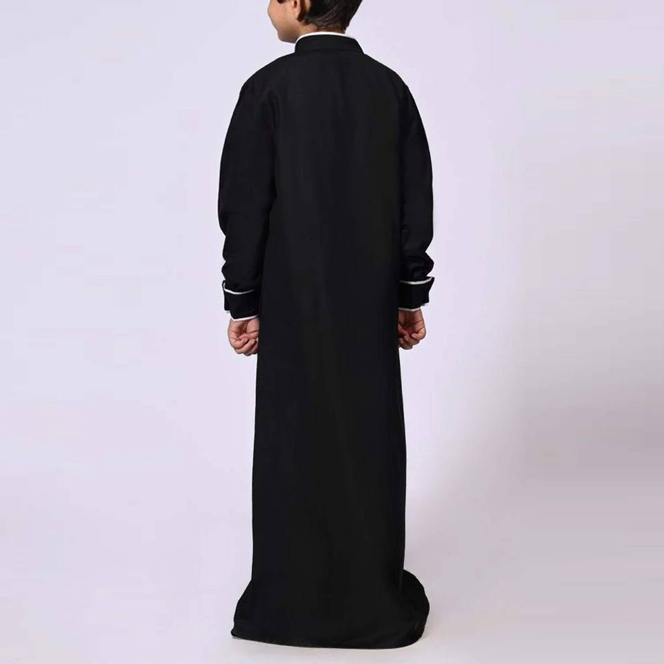 Robe longue ample à col montant pour hommes, style Thobe Abaya, de haute qualité, inspirée de l'islam arabe du Moyen-Orient, pour enfants et adultes, tenue modeste et tendance.