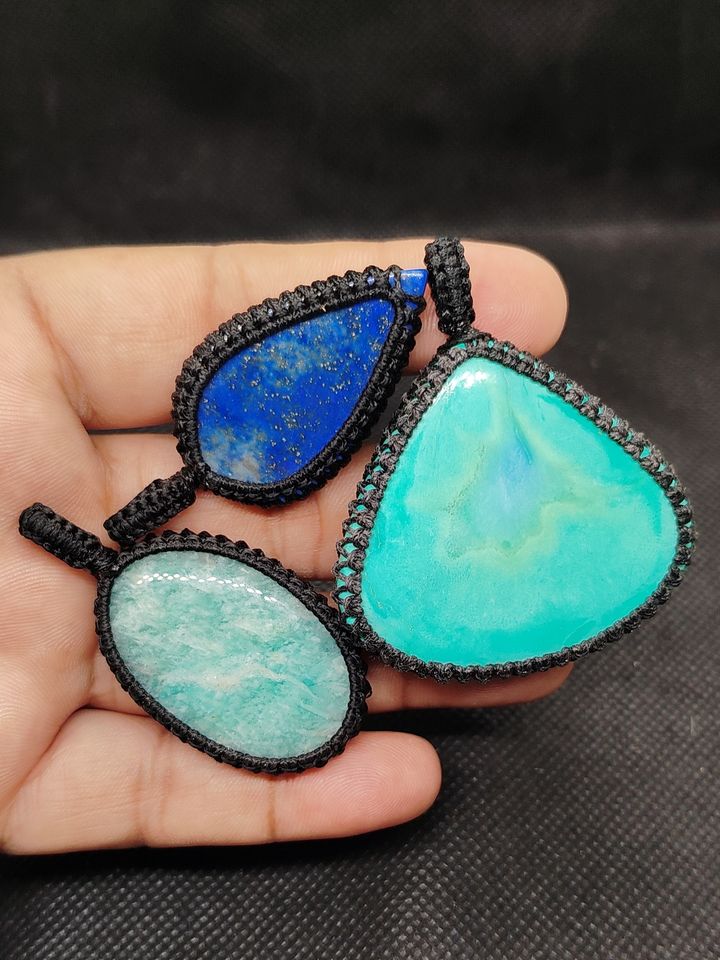 Collier de mode en macramé avec pendentifs en pierres précieuses naturelles de qualité supérieure, en laiton, de formes variées, lot en gros