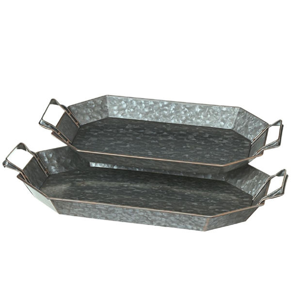 Plateau de service galvanisé à 3 compartiments de couleur naturelle de qualité supérieure Design moderne Plateaux de service décoratifs à bordure latérale supérieure
