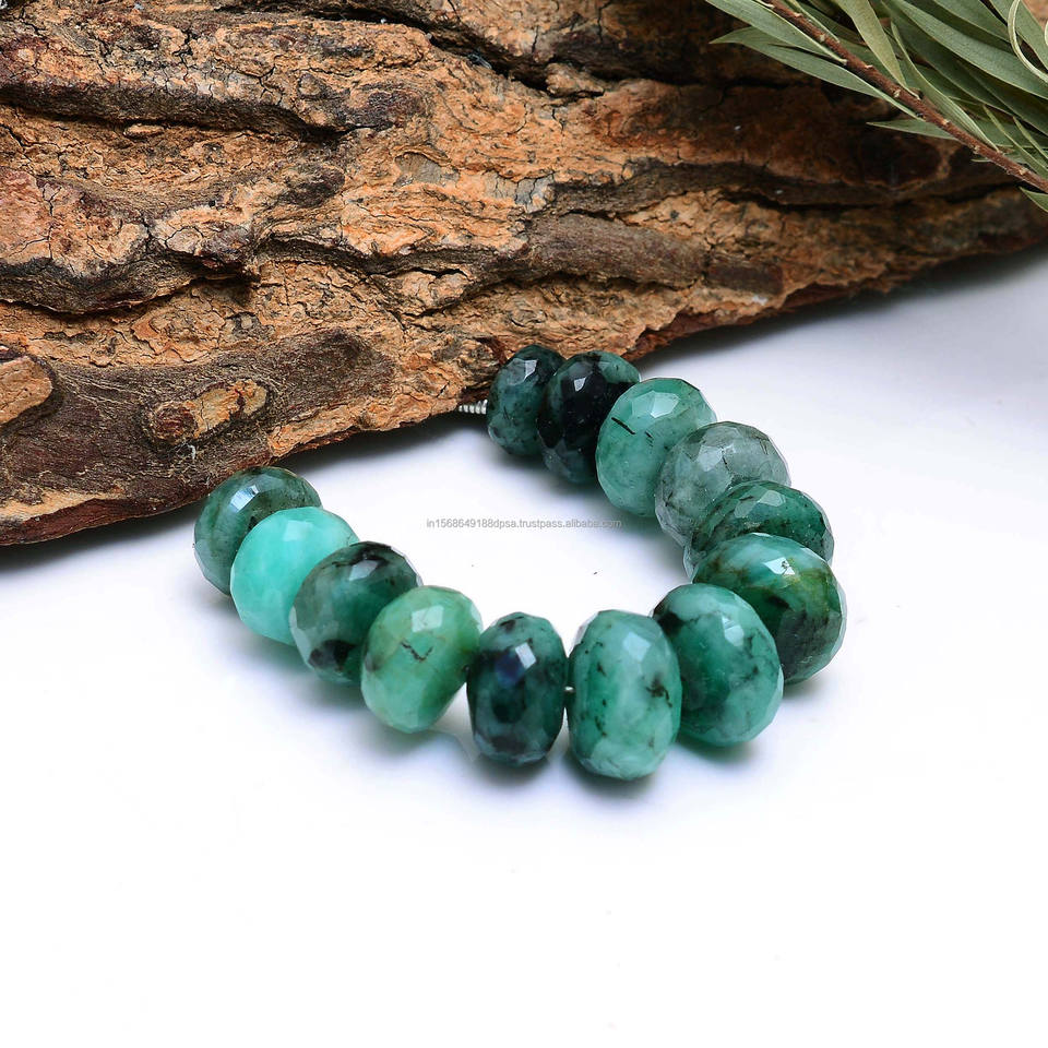 Perles de rondelle d'émeraude verte naturelle de qualité supérieure perles de pierres précieuses organiques pour la fabrication de bijoux belles perles d'émeraude verte