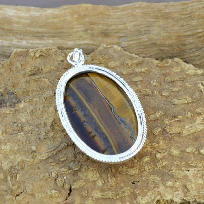 Top Quality Natural Tiger Eye Oval Cabochon Solid 925 Sterling Silver Plated Designer Bezel Pendant Women's Wholesale Jewelry