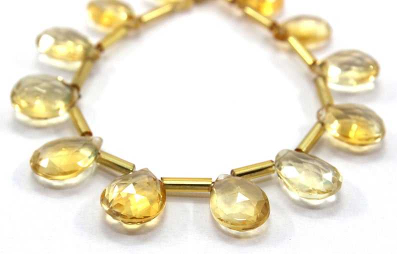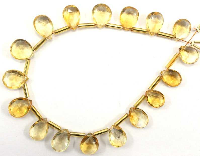 Pierre de naissance de novembre 1 brin pierre Citrine naturelle 17 pièces perles de Briolette à facettes en forme de poire