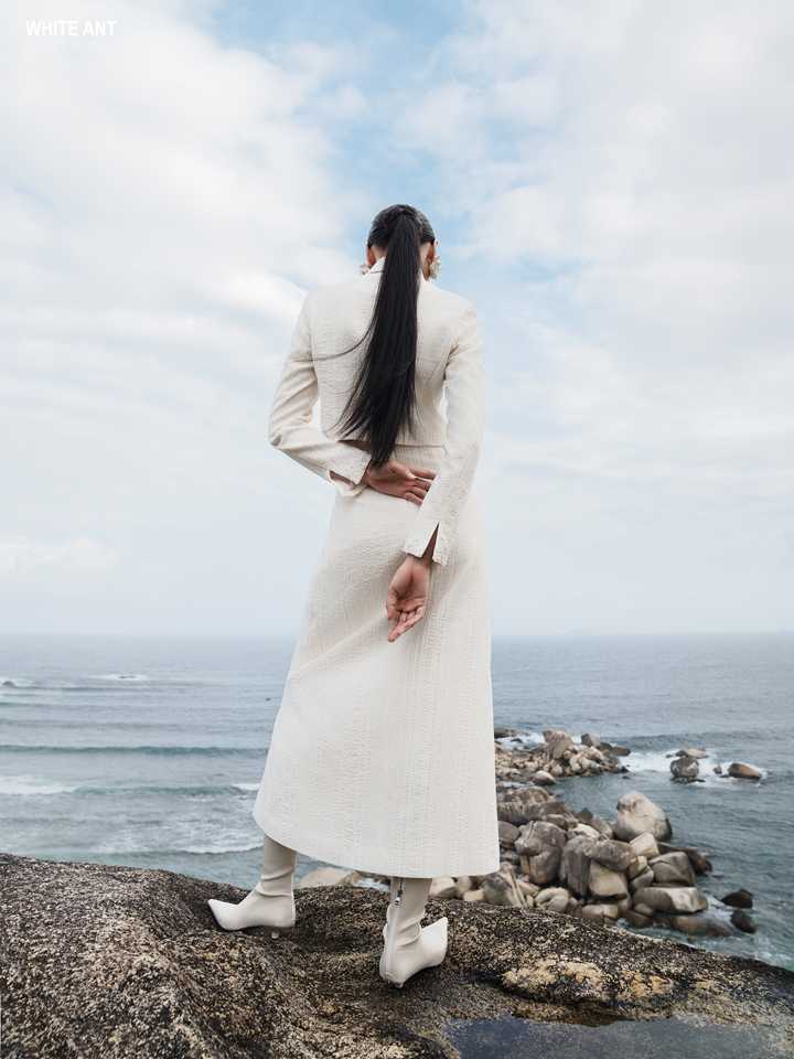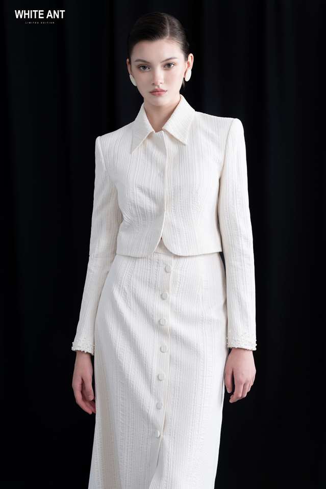 More details:Oversized collar, box pleats, four patch pockets button with flaps.