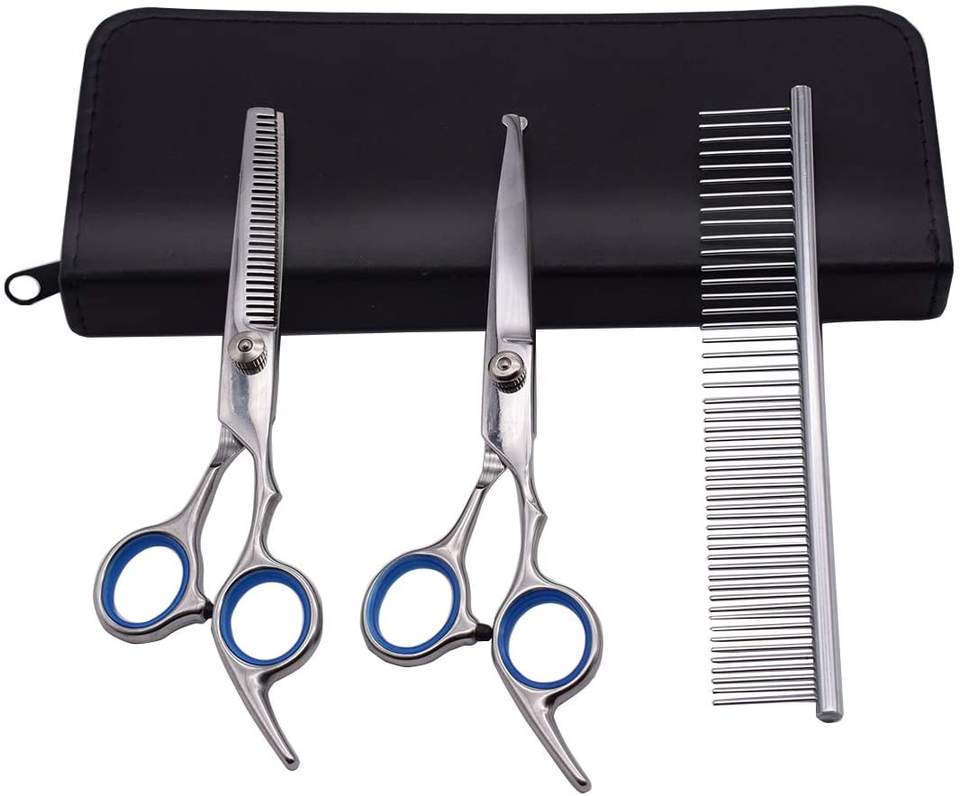 Ciseaux de toilettage pour chiens de compagnie de qualité supérieure avec pointe ronde de sécurité Kit de tondeuse de toilettage pour chats Ciseaux de coupe de cheveux pour animaux de compagnie