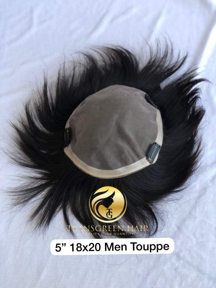 Nom du produit:Vierge indienne 5 "de temple extension de cheveux de postiche des hommes 18x20