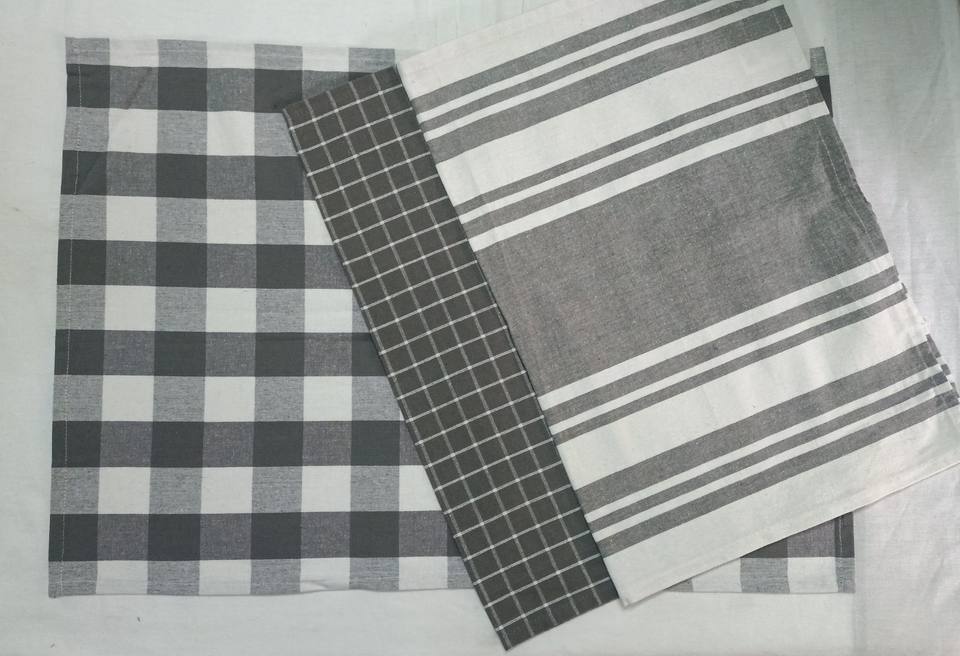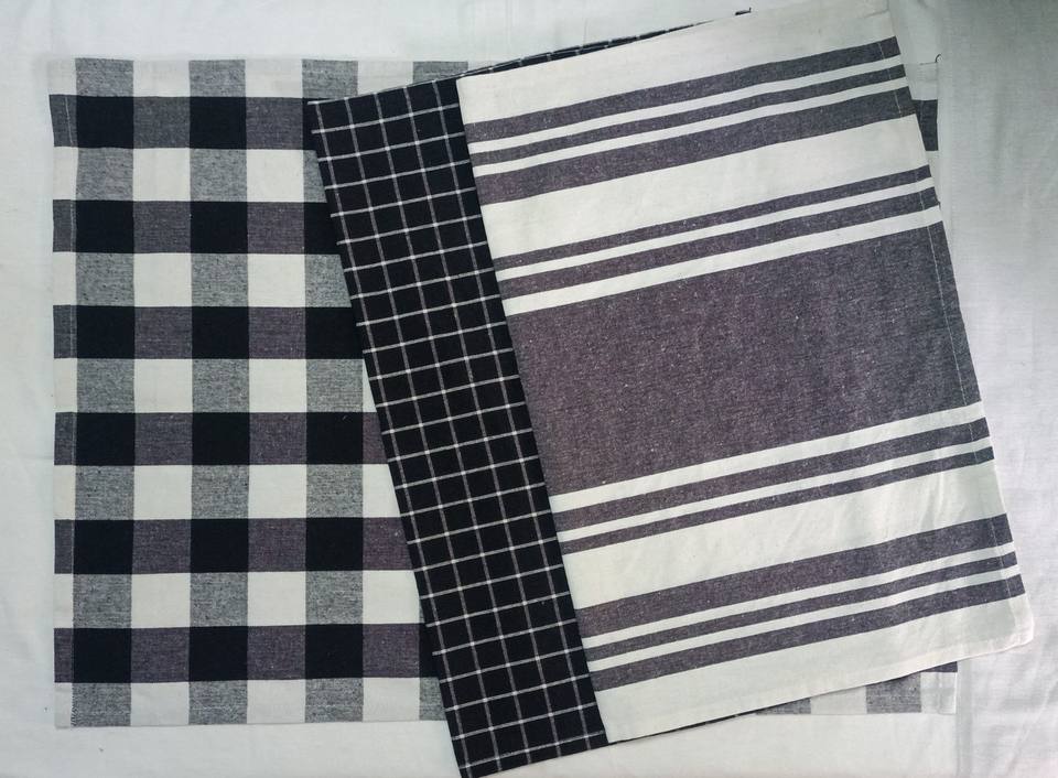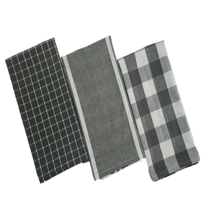 Vente en gros de 3 pièces ensemble de torchons de cuisine de haute qualité 100% coton à séchage rapide écologique logo personnalisé motif à rayures techniques tissées