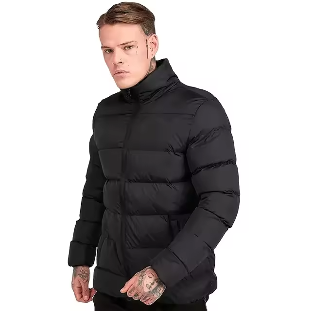 Veste matelassée de haute qualité pour homme, couleur noire, coupe ajustée, fermeture éclair, grande taille, vêtements décontractés, veste matelassée chaude pour homme pour l'hiver