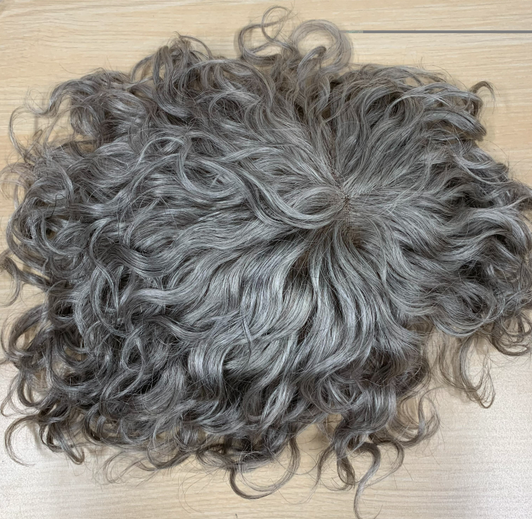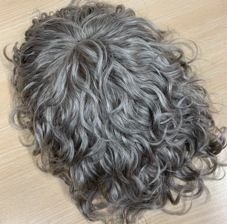 Top qualité vrais cheveux humains toupet bouclés naturels sel et poivre #1b80 remplacement de cheveux humains gris 8x10 toupet en dentelle complète pour les hommes