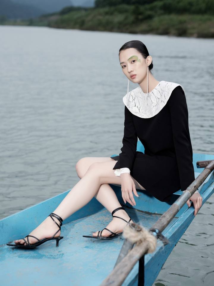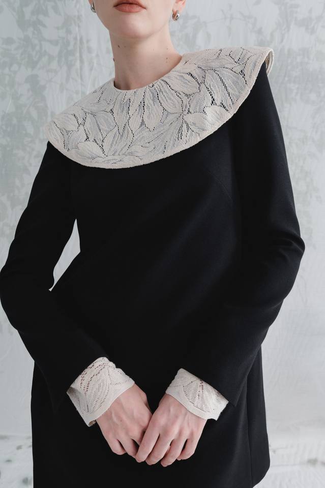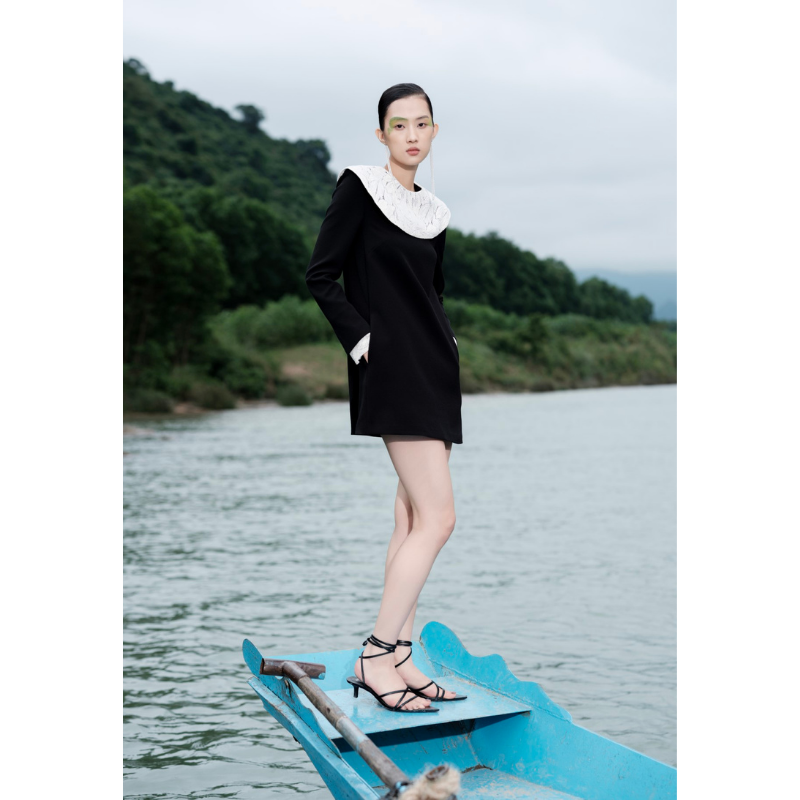 Robe pour femme à col rond et manches longues de qualité supérieure QUINN MINI DRESS Tissu tissé en rayonne et élasthanne écologique BLANC ANT Vietnam