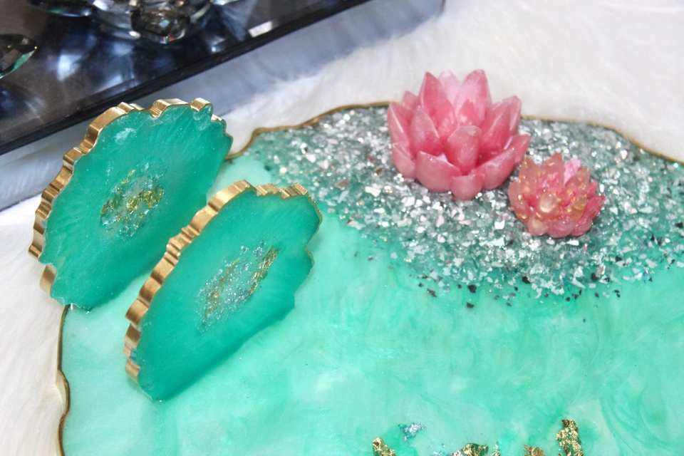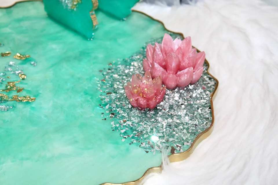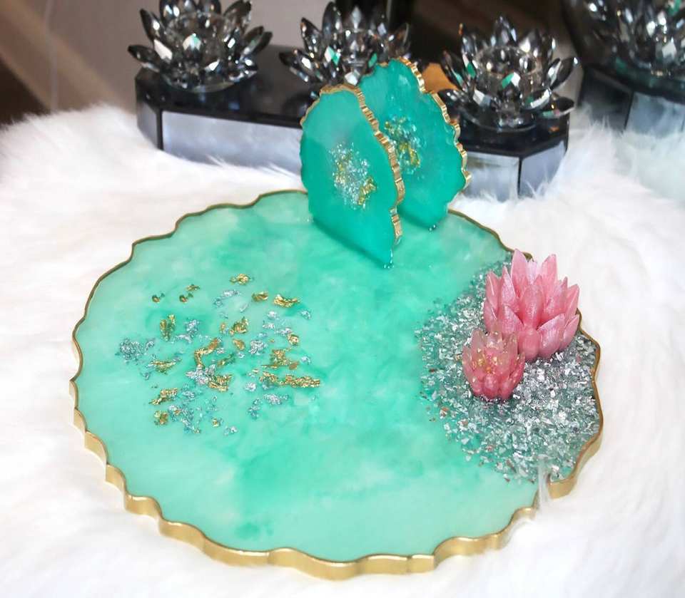 Plateau rond en résine fabriqué à la main Plateau de service décoratif et fonctionnel Plateau de service, Plateau en résine gravée, Plateau en résine personnalisé,