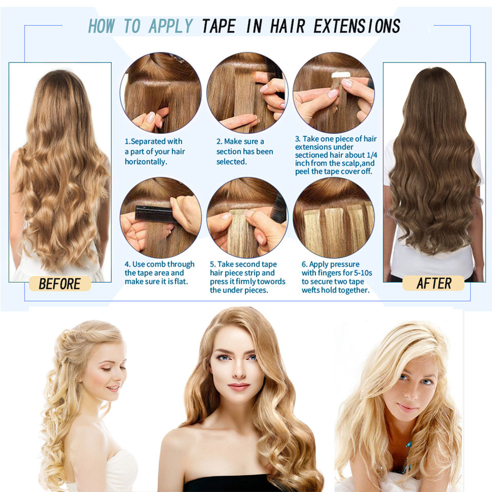 Extensions de cheveux russes blonds 100% naturels avec Double ruban adhésif de qualité supérieure, grand Stock