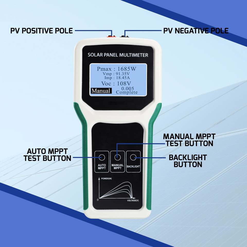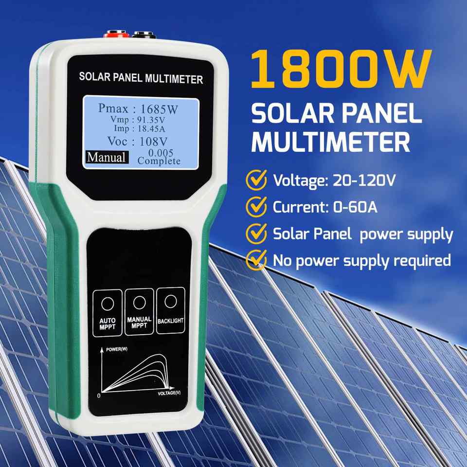 Multimètre numérique solaire de qualité supérieure avec détection automatique/manuelle du MPPT, plage 5-1800W, compatibilité 24V 48V 120V pour panneaux solaires