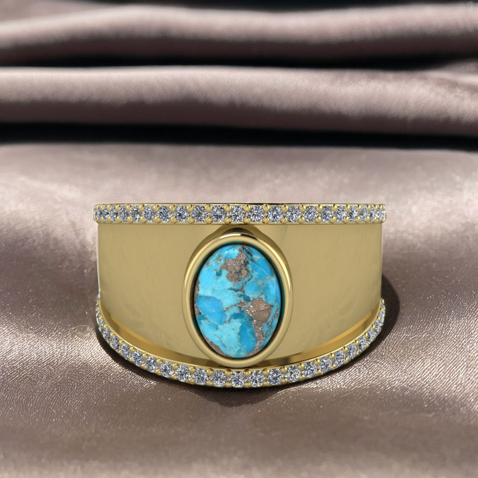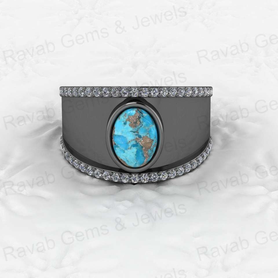 Product Name:925 Silver Pyrite Turquoise Boho Rings