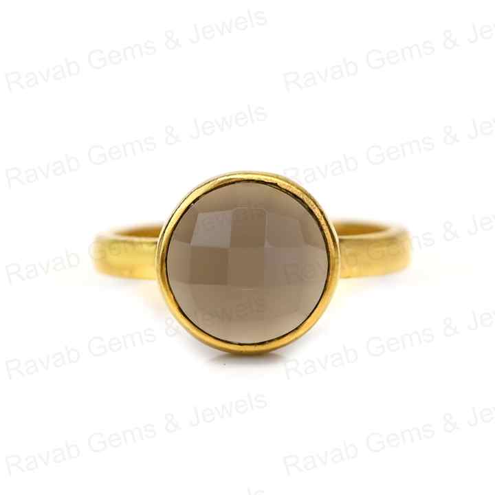 Nom du produit:Calcédoine grise naturelle en argent sterling plaqué or bague de déclaration