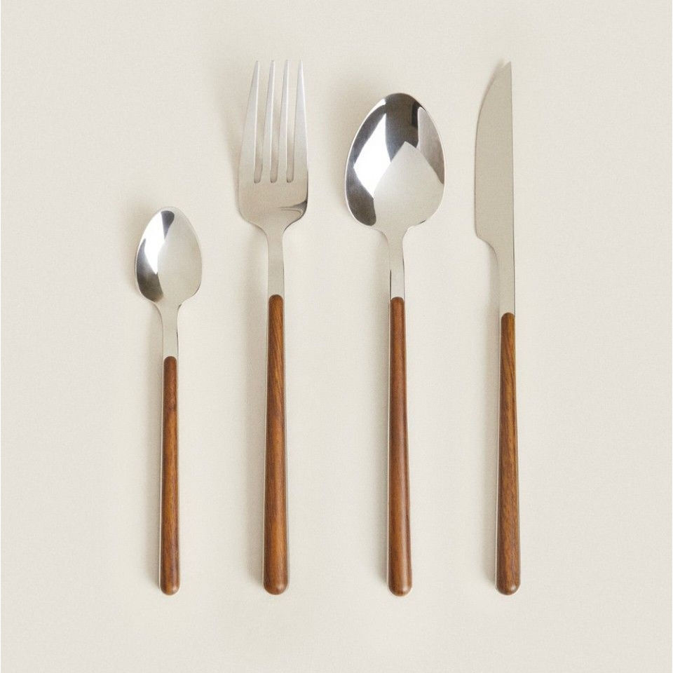 Ensemble de couverts en acier inoxydable de qualité supérieure, manches en bois, finition miroir, design moderne, collection Royal Home, couteau, fourchette, cuillère