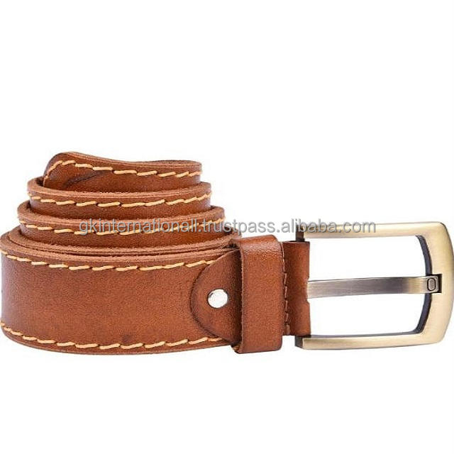 Ceinture décontractée en cuir grain de qualité supérieure pour hommes avec coutures contrastées durables boucle à ardillon en laiton robuste