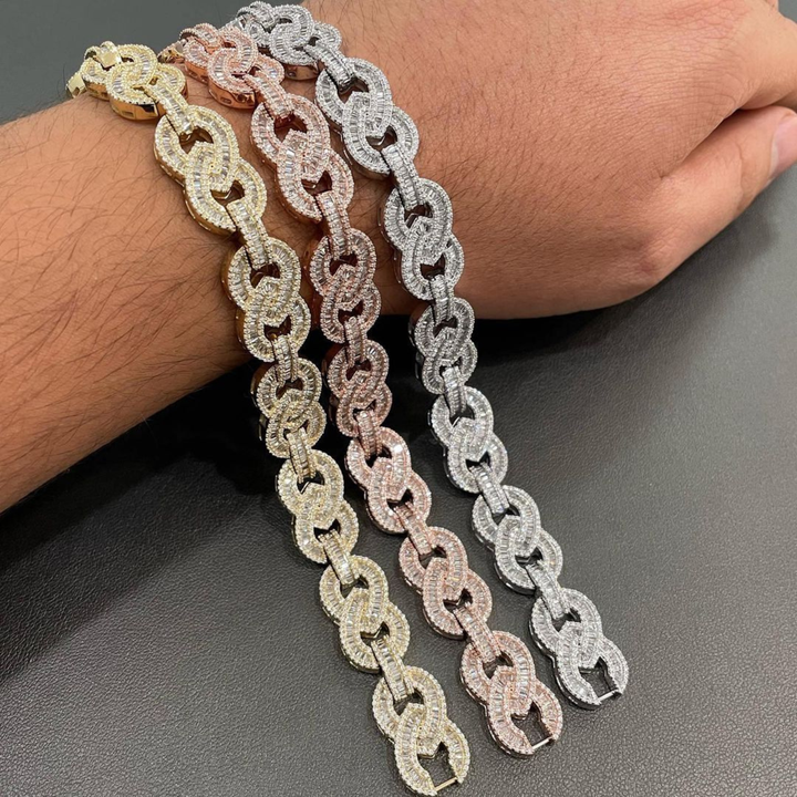 Bracelet Moissanite à coupe ronde de qualité supérieure Bracelet en argent sterling 925 plaqué or 20mm Bracelet Hip Hop glacé