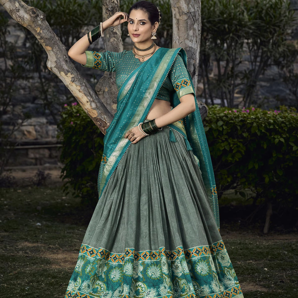 Lehenga Travail:Imprimé floral avec imprimé