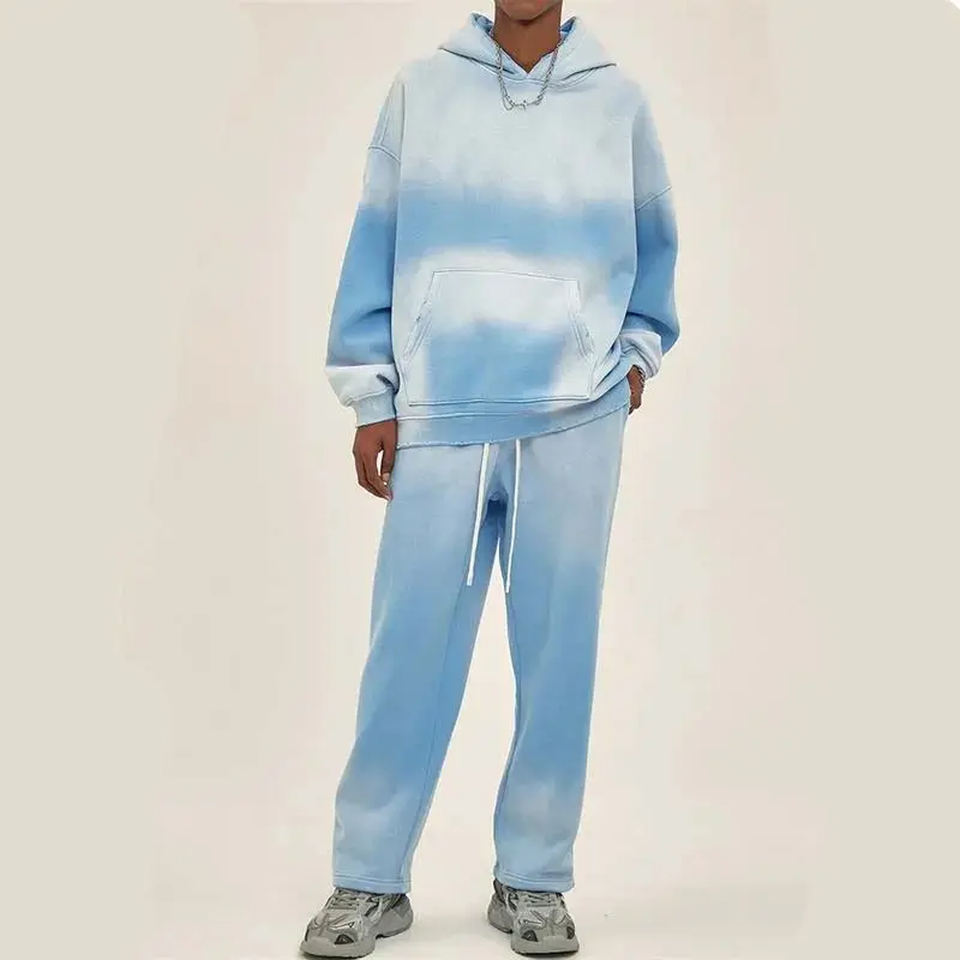 High Quality Vintage Acid Washed Oversized Unisex Cotton Fleece Tracksuits High Embroidery Printing Winter Solid High-End Set