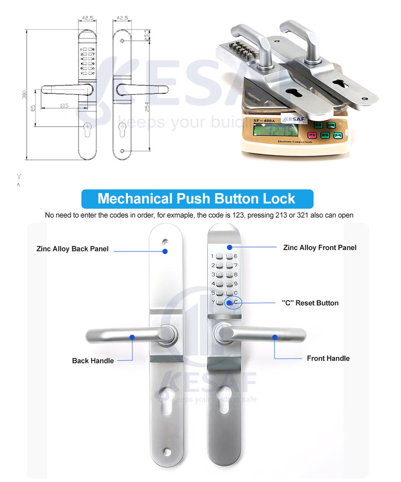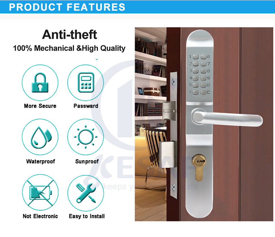Serrure de porte à code mécanique étanche de qualité supérieure avec clavier à boutons poussoirs