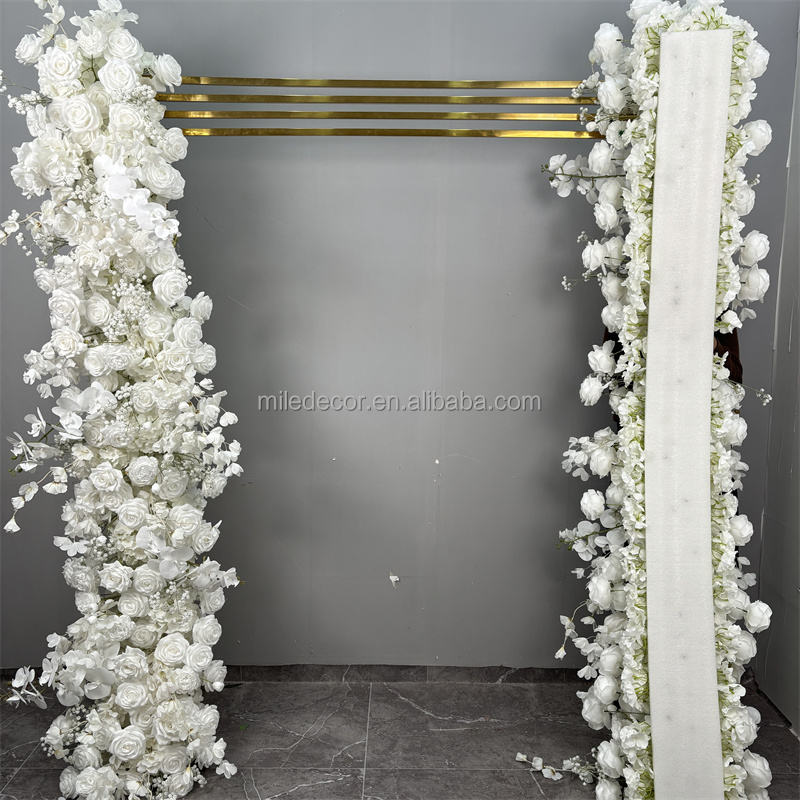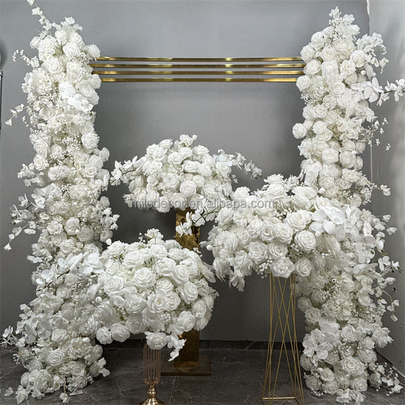 Top qualité mariage Isle ivoire toile de fond arc fleurs rangée soie Rose blanc Table fleur coureur pour allée décoration