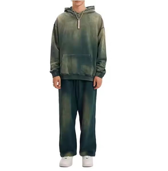 Survêtements d'hiver de qualité supérieure, effet délavé, coupe évasée, pour hommes, imprimé bouffant, col à capuche, motif uni, style vintage, hip-hop, 100% coton