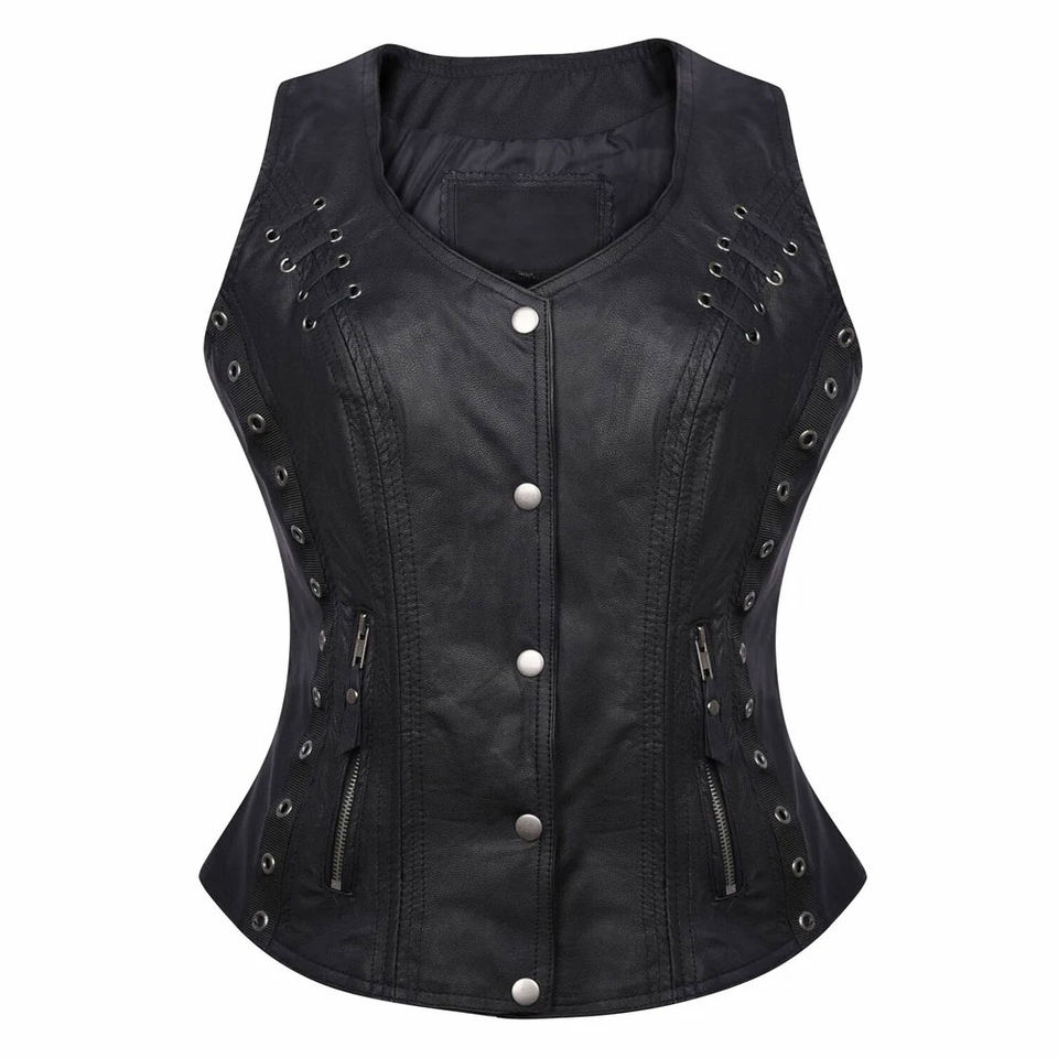 Top Quality Women's Genuine Leather Vest Real Leather Goatskin Leather Vest with Custom logo and Sizes for Women