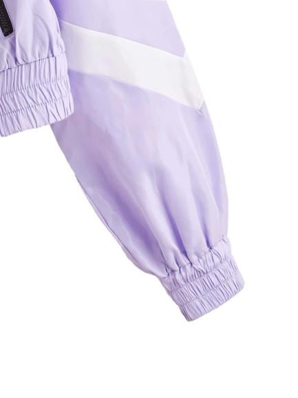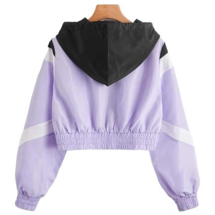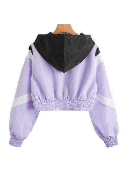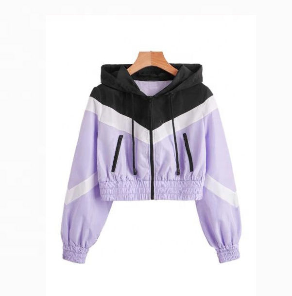 Top qualité femmes coupe-vent veste grande taille Crop couleur bloc fermeture éclair poche cordon capuche respirant imperméable