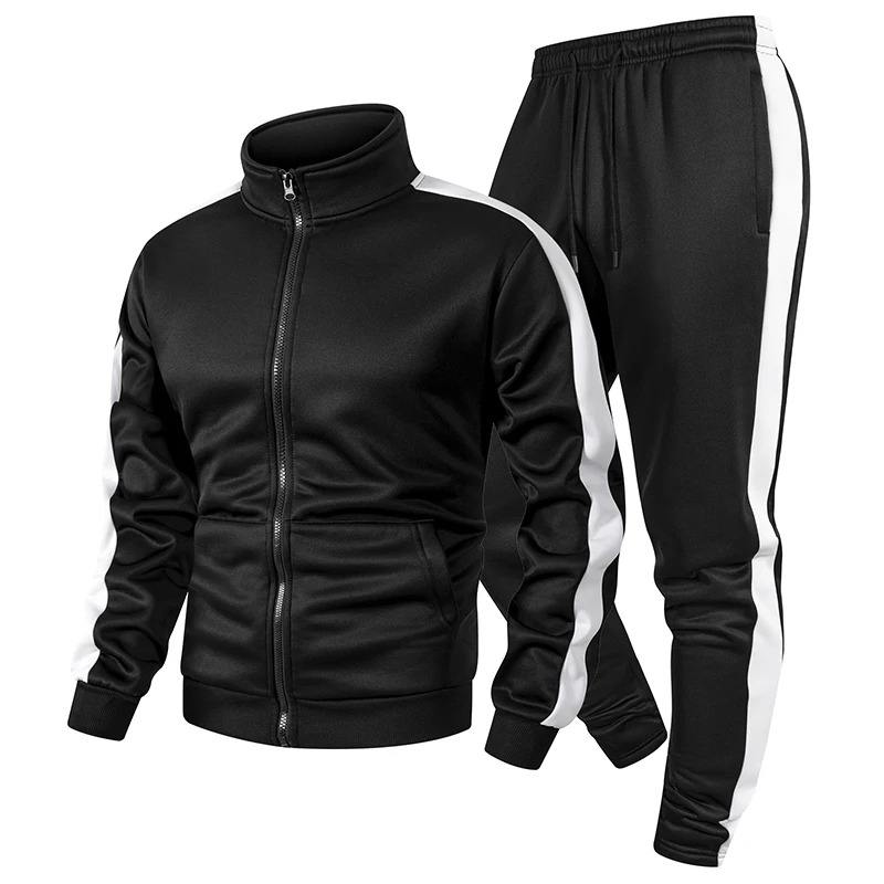 Ensemble de survêtement streetwear 100 % coton de haute qualité pour l'entraînement hivernal, sportif et décontracté, avec taille élastique et fermeture éclair intégrale pour homme