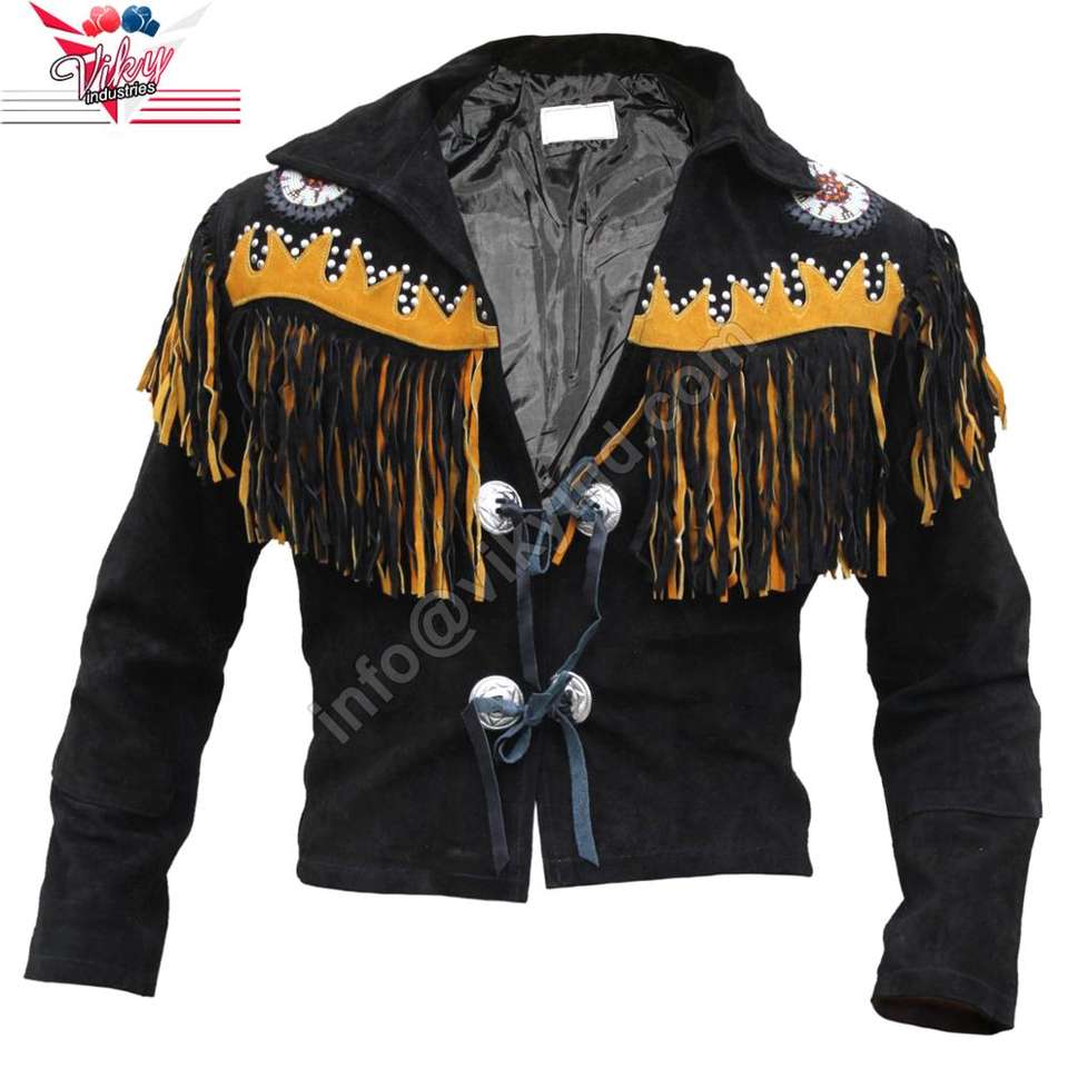 Nom du produit:En Blanc Western Style Franges Cowboy Suede Veste en cuir