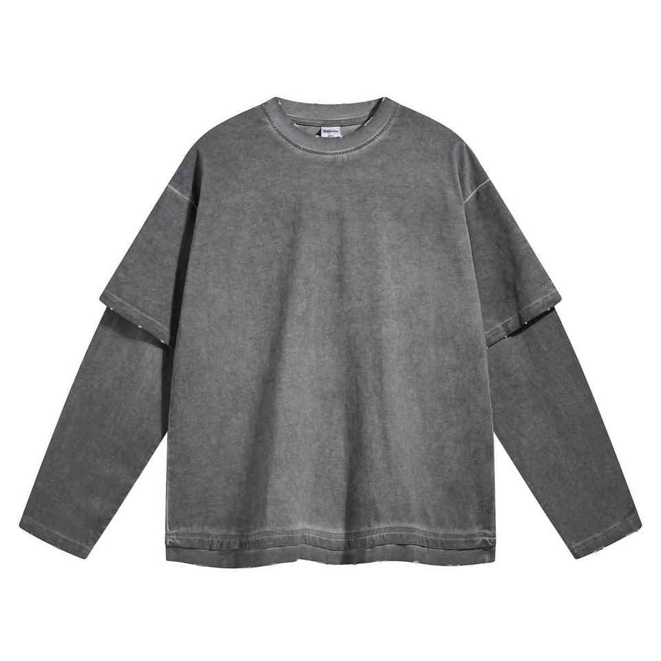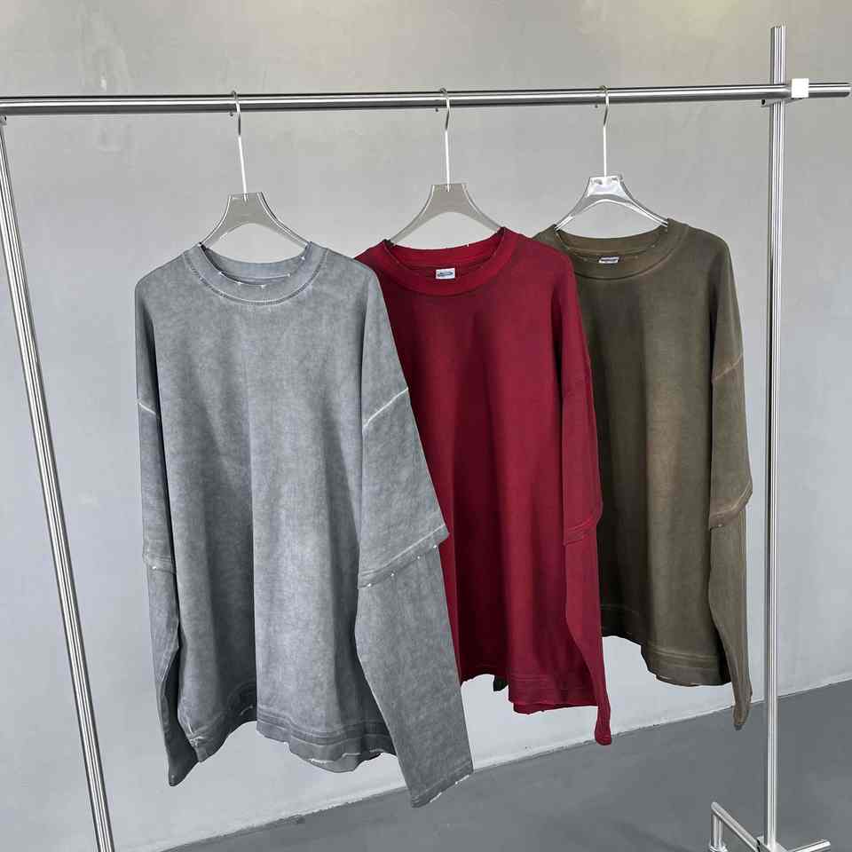 Top Quality100 % coton DTF impression Double couche graphique respirant tissu gaufré manches surdimensionné Long T-Shirt pour adulte